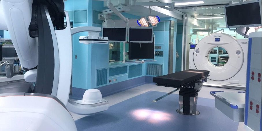 También es posible realizar un servicio de angiografía por tomografía computada. Con el fin de simplificar los diversos tipos de imágenes que los pacientes puedan necesitar durante la cirugía, con la combinación de ambas salas se otorga mayor seguridad al paciente y se mejoran los flujos de trabajo clínicos. Estos locales, al encontrarse unidos, es posible manejar a los pacientes traumatizados en una misma sala y realizar distintas intervenciones sin tener que trasladarlos a lo largo del hospital.