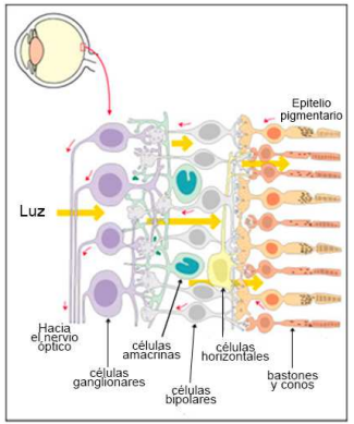 Hasta finales del siglo pasado se consideraba que las partes fotosensibles de la retina eran los conos que se discriminan en tres tipos, cada uno sensible a una parte del espectro, por lo que se dice que los conos son sensibles al color. Y por otro lado los bastones que son sensibles a la cantidad de luz, son capaces de distinguir claros de oscuros, pueden decodificar en profundidades, pero no en color.