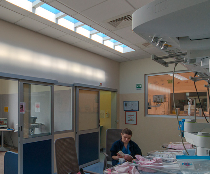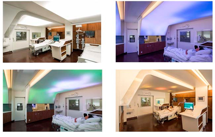 En unidades de cuidados intensivos que cuentan con nula referencia del momento del día, es beneficioso simular los ciclos con iluminación artificial. Esto evita la desorientación tan común en pacientes que pasan varios días en estas unidades y reduce la posibilidad de nuevas patologías que pueda traer la internación, asegurando una más rápida recuperación de las intervenciones a las que fueron sometidos.