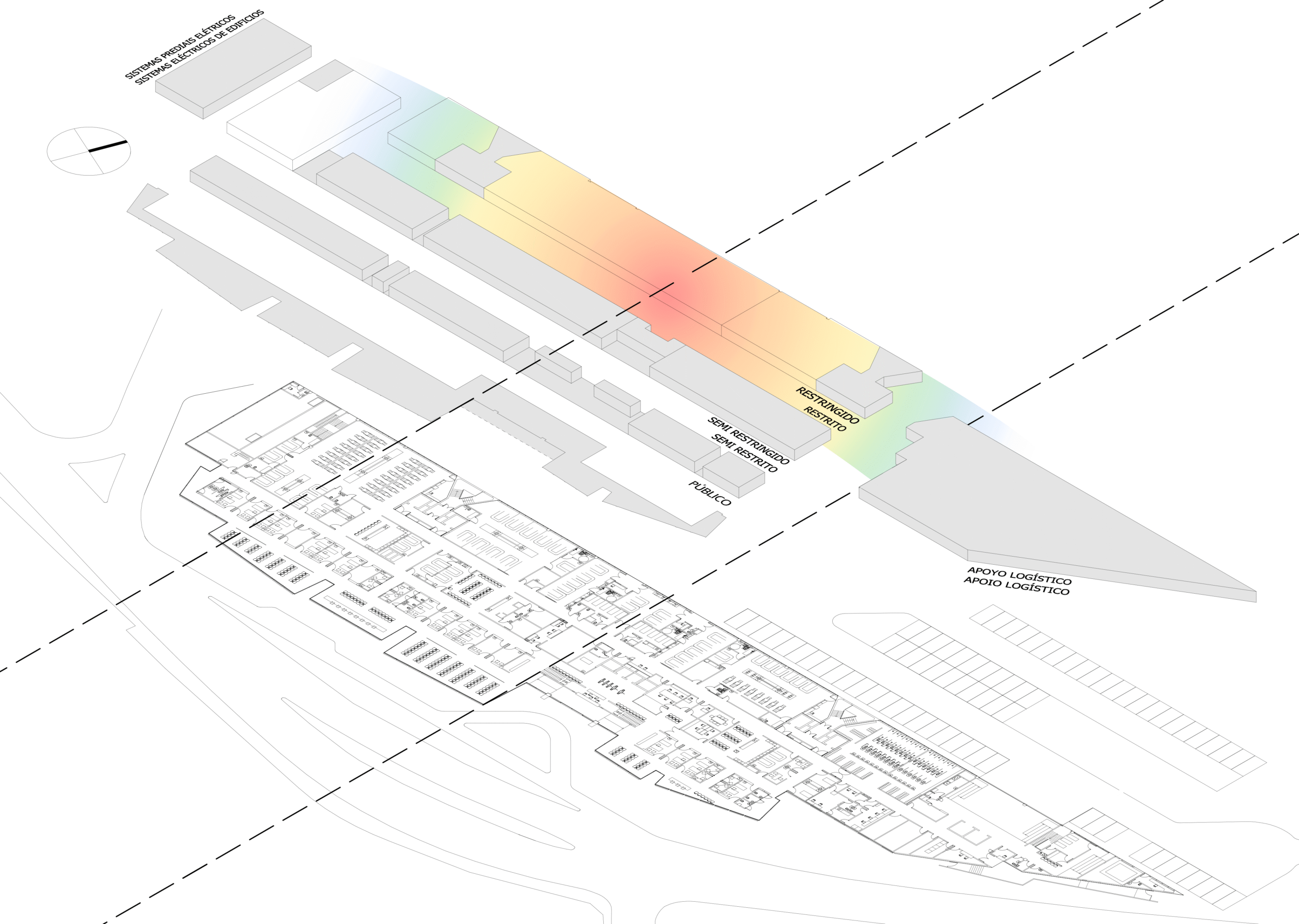 Esta, con pronunciada distinción formal, anticipa sugestivamente al ciudadano, aún desde fuera, cómo funciona el interior del hospital. Vale destacar en el extremo sur de este volumen, el conjunto que alberga los sistemas de edificios de energía eléctrica con subestación, transformadores, banco de capacitores y cuatro generadores de 625 kVA, y en el extremo norte, el apoyo logístico, morgue, muelles, entrada de empleados, carga y descarga.