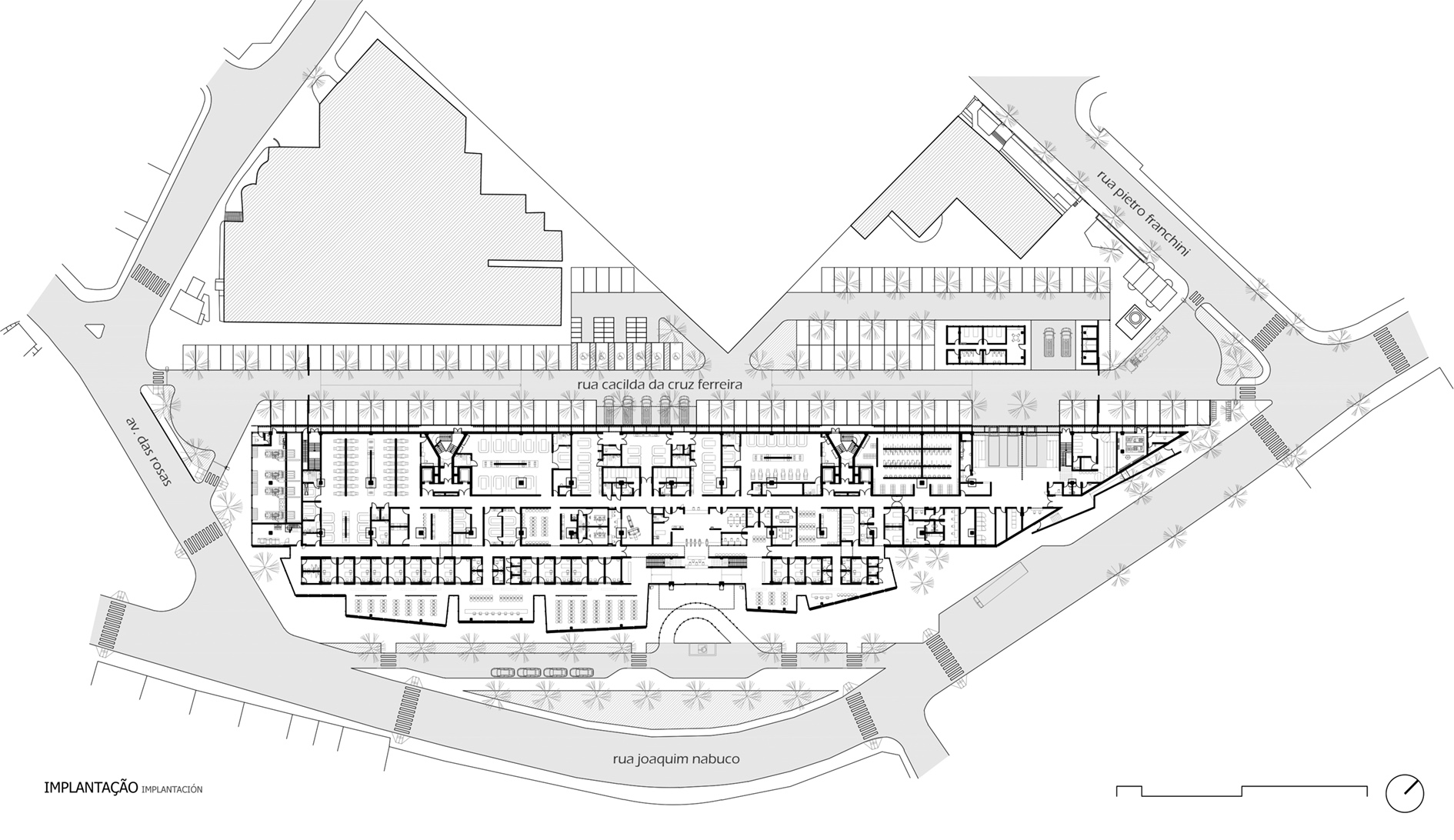 El edificio, con un área total de 20.600m², ocupa toda la extensión de una manzana estrecha y larga. La fachada principal es pública, está dispuesta a lo largo de la calle Joaquim Nabuco. Mientras que la extensión total de la calle Cacilda da Cruz Ferreira funciona como una calle interna para acceso de ambulancias, servicios y muelles.