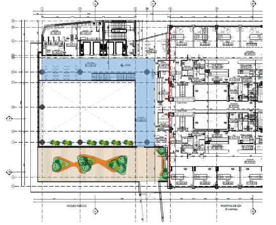 El edificio principal es el Hospital, donde los niveles de aislamiento al ruido aéreo en las áreas de internación y consultorios son clave para el bienestar de los pacientes. Aunque las habitaciones de internación puedan recordar a un hotel, su uso es completamente distinto, así como los ruidos intrínsecos de esta zona. Además, enfrentamos el desafío de un patio central que conecta todos los pisos y genera un microclima interior integral donde se genera una gran cantidad de ruidos.
