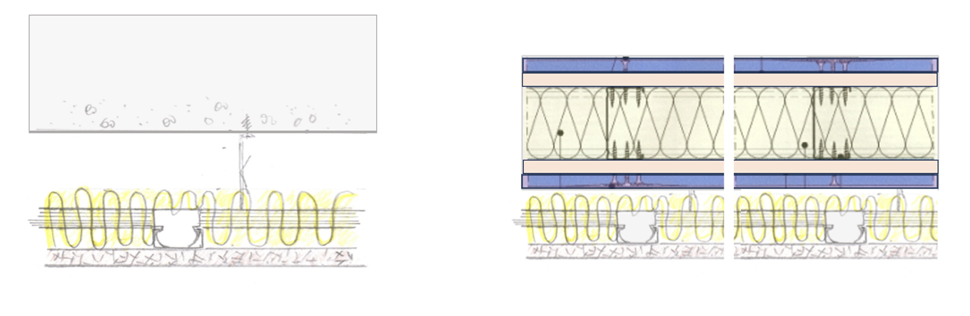 Además, en otro campo acústico, el aislamiento al ruido de impacto es fundamental para garantizar el confort acústico. Este requisito, incorporado en la norma IRAM 4044, y debe ser respetado porque hace la diferencia al confort acústico. Por eso, comenzamos el proyecto definiendo un sistema de aislamiento al ruido de impacto para todas las losas de hormigón armado nervuradas del complejo de salud.