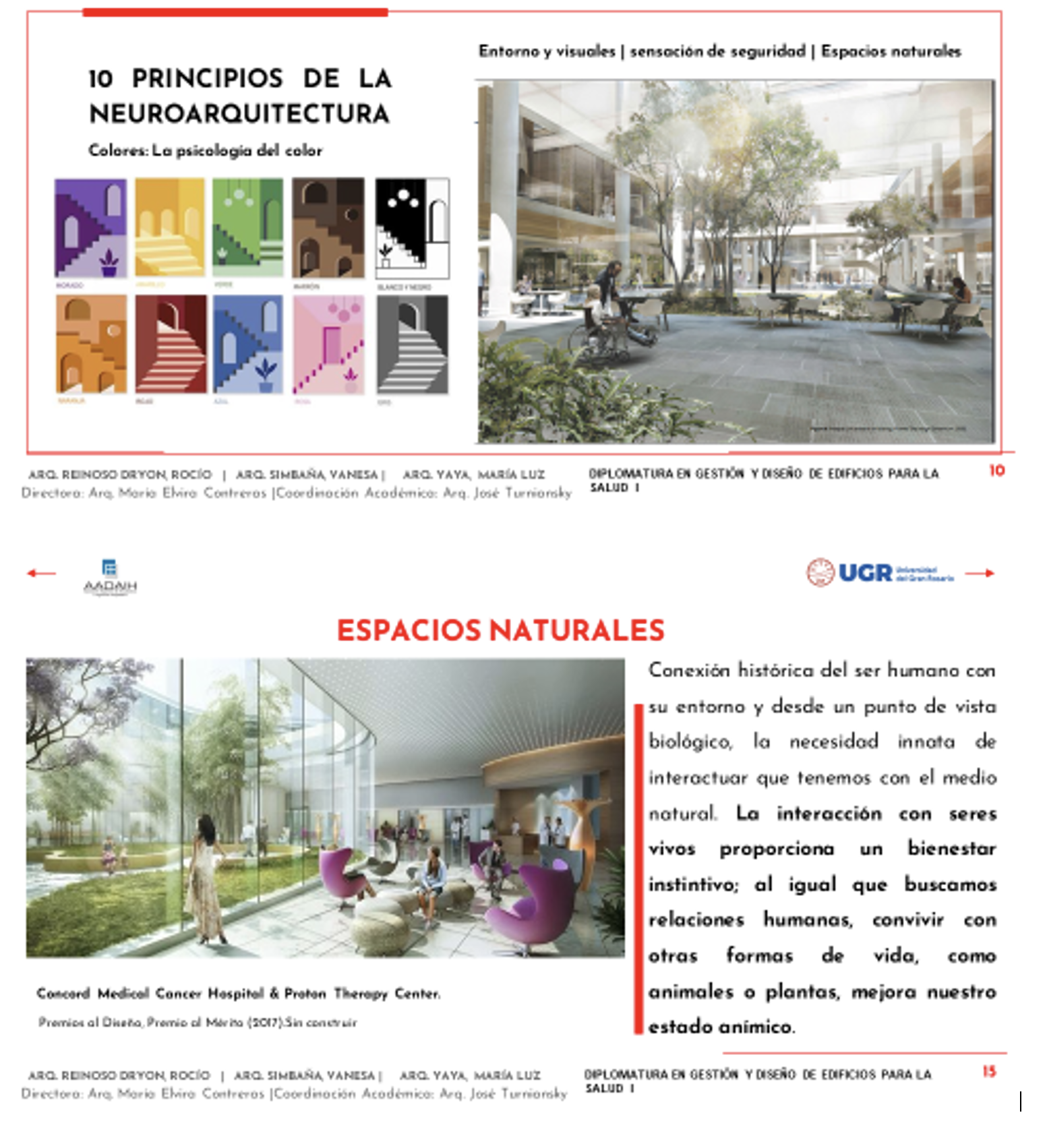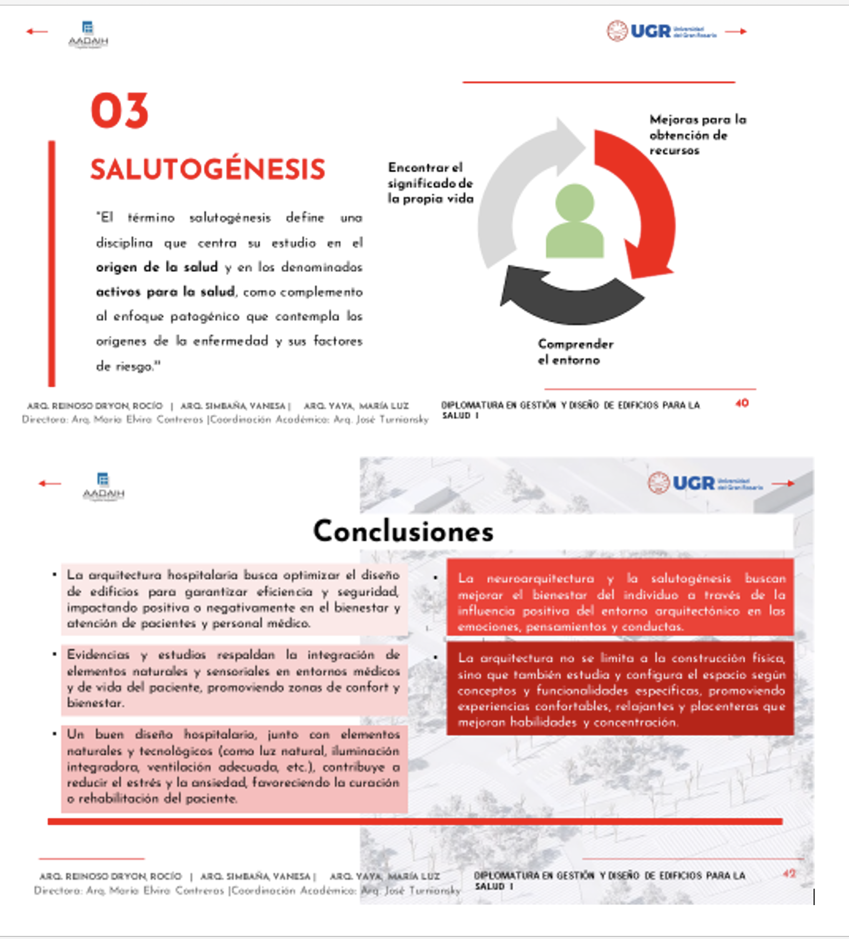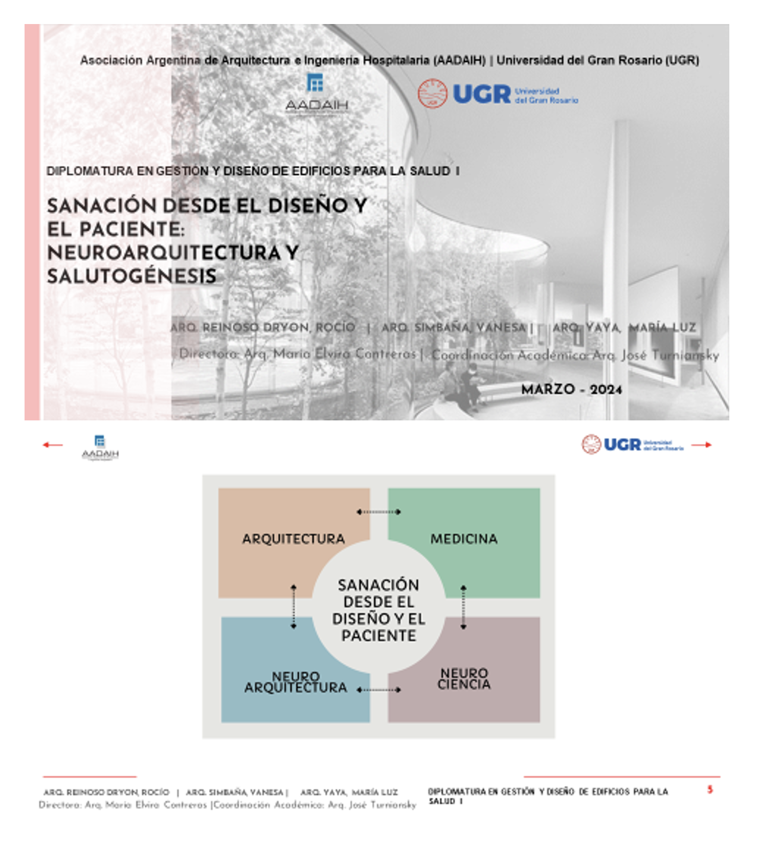 Como cierre de esta etapa, los participantes elaboran un trabajo monográfico integrador. Algunos de estos trabajos, centrados en temas como “Sanación desde el diseño” o “El paciente como centro del proyecto arquitectónico”, pueden consultarse en el sitio web institucional: